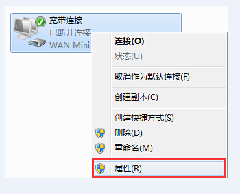 3.在打开的窗口中,找到“宽带连接”右键点击打开“属性”如下图所示