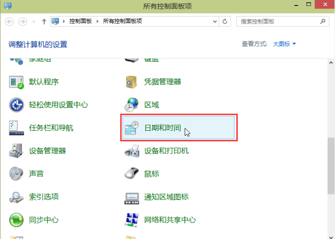 2.在打开的控制面板窗口中,点击打开“时间和日期“进入下一步操作。如下图所示