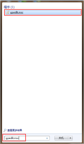 1.打开开始菜单,在搜索和程序栏里输入“gpedit.msc”然后点击打开搜索到的gpedit.msc程序。如下图所示