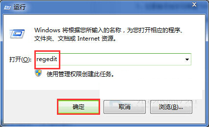 1.使用组合快捷键win键+r键打开运行窗口,在打开的运行窗口中输入“regedit”点击确定打开注册表编辑器。如下图所示