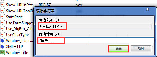3.在Main项右侧界面中,右键新建一个编辑字符,然后双击打开新建的编辑字符,修改里面的数值名称为“Window Title”,修改里面的数值数据为“名字”点击确定完成操作。如下图所示