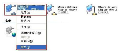 2.在打开的网上邻居属性窗口中,找到本地连接图标,然后右键点击打开本地连接属性窗口。如下图所示