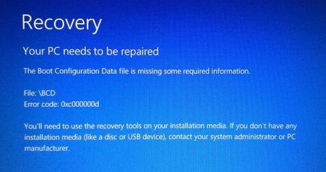 1.首先根据蓝屏提示your PC/device needs to be repaired可以知道电脑需要重装系统或者是还原系统。