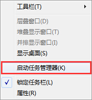 1.登录到系统桌面,在任务栏空白处右键,点击打开任务管理器。如下图所示