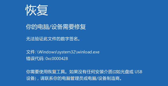以上就是解决win10系统开机失败提示0xc0000428的方法,有遇到此类情况或者是不懂的如何解决win10系统开机失败提示0xc0000428的用户,可以尝试以上的解决方法操作看看,希望以上的解决方法可以给大家带来更多的帮助。