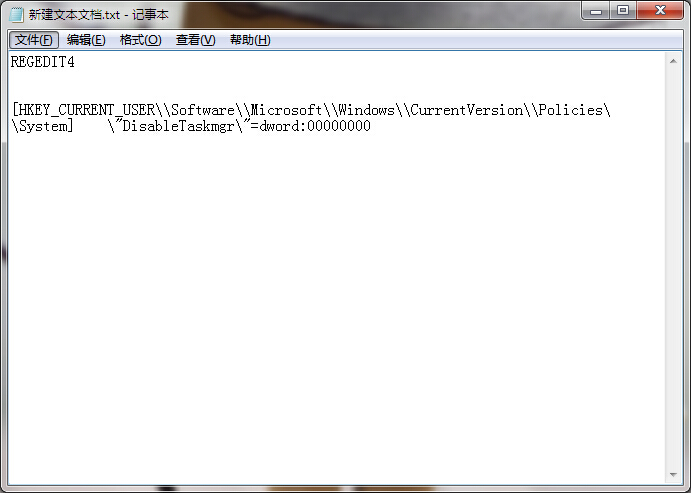 REGEDIT4 [HKEY_CURRENT_USER\\Software\\Microsoft\\Windows\\CurrentVersion\\Policies\\System] \"DisableTaskmgr\"=dword:00000000