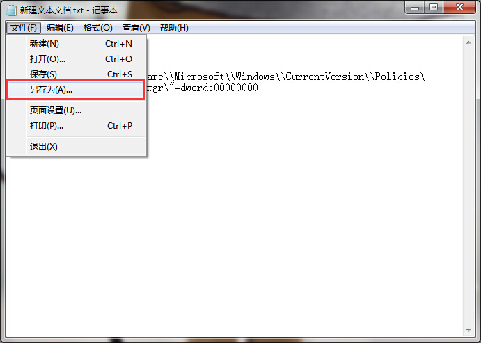 2.点击记事本左上角的文件 - 另存为,将文件另存为文件名为“注册表.reg”,保存类型为“所有文件”即可。如下图所示