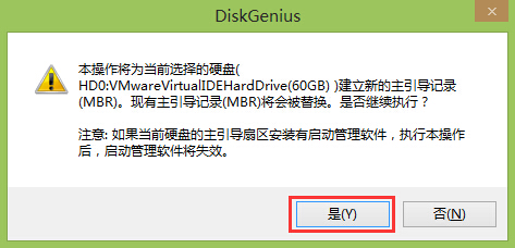 4.在弹出的提示窗口中点击“是(Y)”按钮开始重建主引导记录。如下图所示
