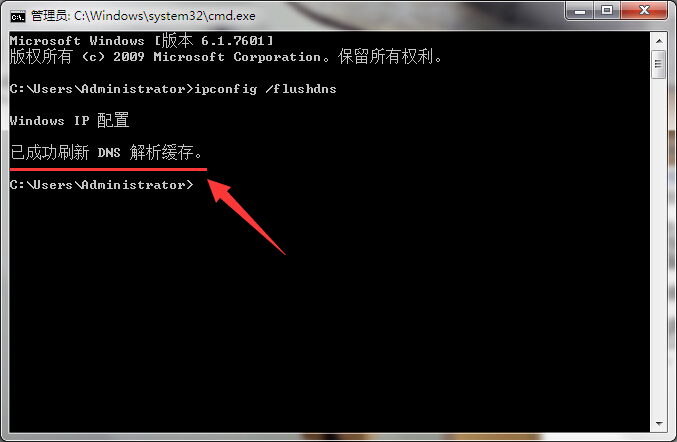 3.耐心等待命令提示符窗口提示“已成功刷新DNS解析缓存”,然后点击关闭命令提示符窗口完成操作。如下图所示