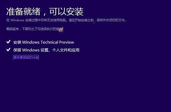 5.在选择需要保存的内容之后,点击下一步即可进入自动升级过程,耐心等待重启安装的完成即可。如下图所示