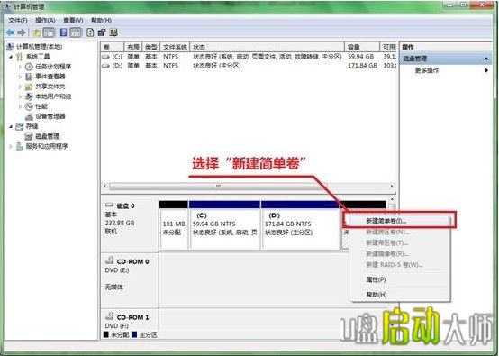 如何在Windows系统下对硬盘分区,很多时候我们出于某些原因需要在硬盘上划分一块新区域,说到这里,大家可能想到了很多第三方的硬盘分区工具,如DiskGenius工具分区,其实在Windows中不需要繁琐的操作和第三方软件就可以在系统下直接进行分区。Windows操作系统中自带了【磁盘管理】程序,可以轻松实现对硬盘的分区、格式化等操作,下面就以Win7系统为例,讲解Windows下如何对硬盘进行分区。