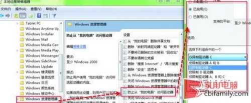 第三、 在右侧找出“防止从'我的电脑'访问驱动器”;