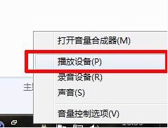 第七、回至桌面,在小喇叭处通过鼠标右键单击,选取“播放设备”。