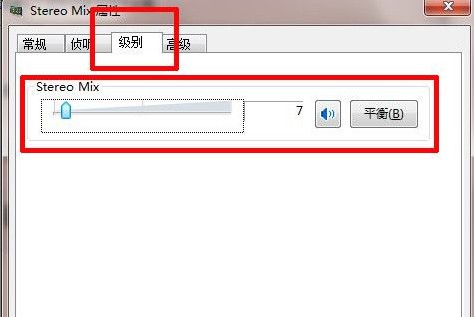 第六、先双击stereo mix属性,进至菜单之后选取“级别”并调整好合适的混合音的音量。设置完成之后点击“确定”。