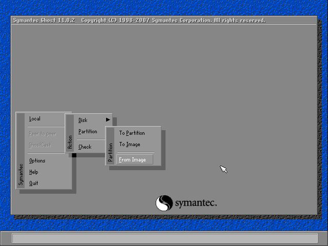 如下图所示用键盘上下左右键操作Local--- Parrtitino---From Image 光标停于From Image 这个上边之时按下回车键。便启动GHOST的