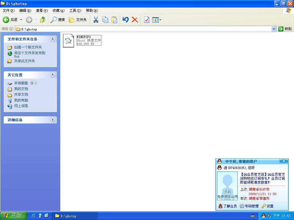 第二,再下载GHOST系统ISO文件。先下载一个GHOST系统,下载之后把它通过RAR软件解压缩出来。仅保留最大的那个GHO文件(600余兆)如图所示;记住此文件一定要放于非系统安装盘,例如,您的系统安装于C盘,则此文件您便能够放在D或者E盘。
