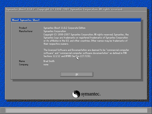 如下图所示,已经启动了GHOST系统.通过鼠标按OK键进至下一步.或者ALT+O也行。