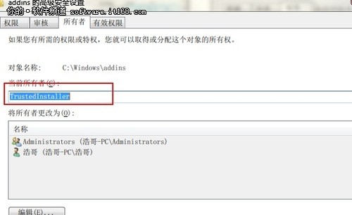 Windows7系统的所有者与最高权限,一样可以表明Windows7系统的安全性是特别高的,确保用户不会由于误操作的发生,造成出现系统问题。