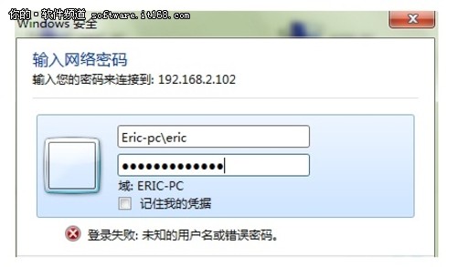 第七. 通过B上任何一个用户登录B计算机,先打开资源管理器,在上端地址栏键入UNC路径访问A计算机。这便要求A、B处于同一个工作组同时是在同一个网段里,同时仍需启用“网络发现”等设置。在此,假定计算机 A 的计算机名是"Eric-PC",而且 IP 地址为"192.168.2.102",如此便能够在资源管理器的地址栏输入"\\Eric-pc"也能够输入\\192.168.2.102且按Enter键访问。