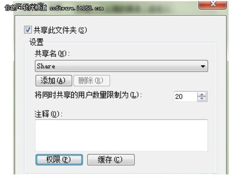 第一.通过左键 点击"高级共享",跳出配置对话框,选取"共享此文件夹"前边的复选框,随后单击"权限"按钮。