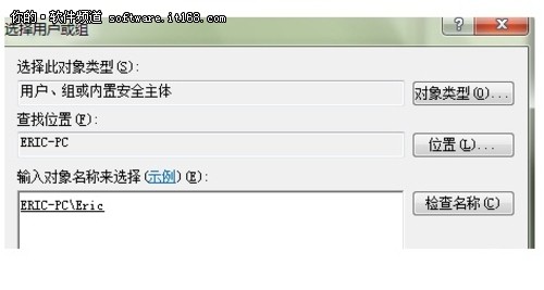 第四. 再单击"添加"按钮,在跳出的"选择用户或组"对话框里,咱们键入一个用户账户而且得有密码,随后点击右边“检查名称”。名称正确前端会自动添加电脑名称,与此同时也会添加下划线。