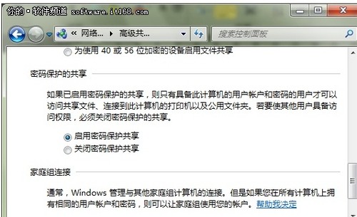 在此选项卡的下端,很明显的能够清楚当前电脑处在启用密码保护共享状态,用户一定要有这个电脑的账户与密码方可浏览共享文件夹。
