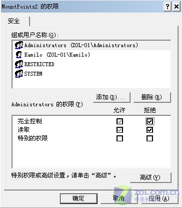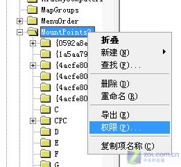 “开始”→“运行”里键入“regedit”打开注册表编辑器,定位至:HKEY_CURRENT_USER/Software/Microsoft/Windows/CurrentVersion/Explorer/MountPoints2下,然后单击鼠标右键,选取“权限”项,把全部用户的权限设成“拒绝”。
