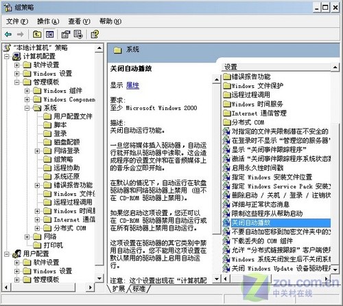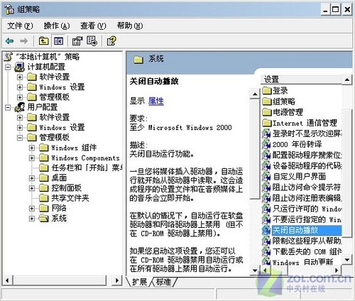 在“开始”→“运行”里键入“gpedit.msc”,便打开“组策略”窗体,在“用户配置”→“管理模板”→“系统”栏里,双击“关闭自动播放”项,把它设成“已启用→所有驱动器”。禁用“自动播放”功能。