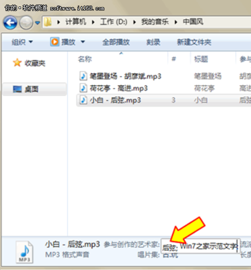 随后您能够看见在资源管理器状态栏处有各个文字,单击它们便能够更改,艺术家、流派、分级、唱片集等等。