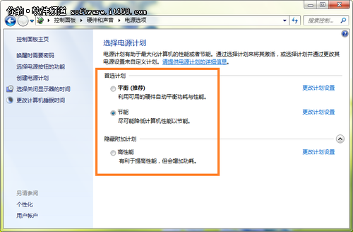 打开Windows7系统“电源选项”之后,咱们会看见系统给大伙预设了平衡、节能与高性能等三类电源计划,选取“平衡”,能够通过可用的硬件自动平衡功耗与性能;选取“节能”,将尽量降低计算机性能 ,以达到节能的效果;选取“高性能”,便有助于提升电脑性能,可会增加功耗。若平时仅是通过电脑进行日常办公与上网浏览,对电脑的性能无特别高的要求,不妨选取“节能”,以达到节能省电的效果(如图2所示)。