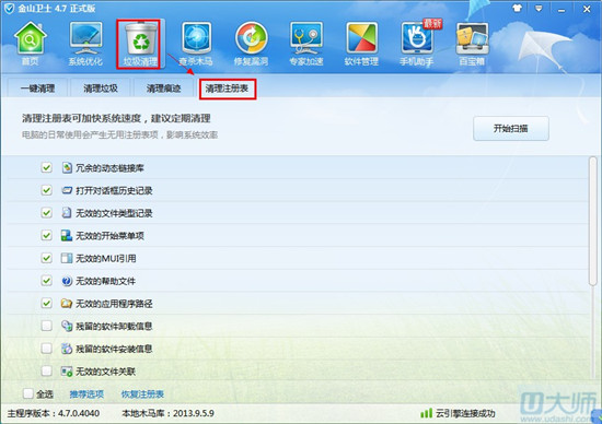 windows在开机启动之后,系统要读取注册表中的有关资料且暂存在ram(内存)里,windows开机的大多数时间,均用了在这上面。所以,整理、优化注册表显得非常必要。关于注册表的优化,能够利用金山卫士等软件。用金山卫士作为例子,先点击垃圾清理,里头有一个清理注册表,然后点击开始扫描,软件会自动扫描计算机注册表垃圾,随后点击清理便OK了。