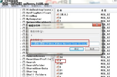 第三.找出右边窗体内名称是4的选项,打开之后写入自个想要的图标的完整路径。