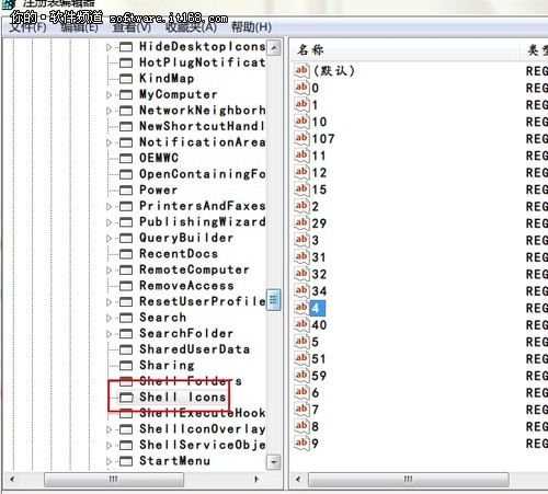 第二.在注册表里找出“HKEY_LOCAL_MACHINE\SOFTWARE\Microsoft\Windows\CurrentVersion\explorer\Shell Icons ”。