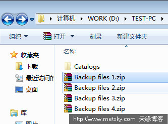 从Windows 7的自动备份里提取文件,最好优先使用控制面板-》备份与还原里的还原向导进行,若当前计算机已经不是Windows Vista或者Windows 7,则能够用以下方法手动提取文件(当然了,是Windows 7依旧能够使用下面的办法提取)。再打开保存备份的位置(此位置便是前边文章中设置的保存位置),按照需要提取文件的可能日期点开相应的文件夹,如下图所示,能够看出均是.zip格式文件。