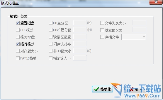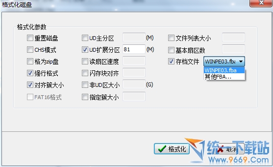 若哪天要将U盘还原为原先的状态(无启动文件,容量恢复原先的大小),仅需通过 FbinstTool.exe 重新格式化U盘,根据下图勾选,便OK了