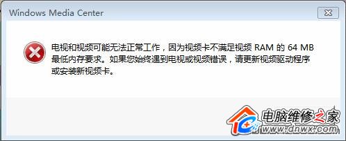 讲下在试用驱动时发现的数个问题。第一个是Windows Media Center(简称WMC)程序不能启动。小编在测试里发现要启动WMC,显卡得具有64MB以上显存,不然系统会提示“电视和视频或许不能正常工作,由于视频卡无法满足RAM的64MB最低内存要求”(如图)。第二个是Aero特效。按照在不同驱动程序下的数次测试的结果,早期的显卡虽然可以强行打开Aero特效,可是不能正常显示,至多仅可看见鼠标移动,桌面上全部内容均不能显示,可是非Aero主题还是可以正常使用。