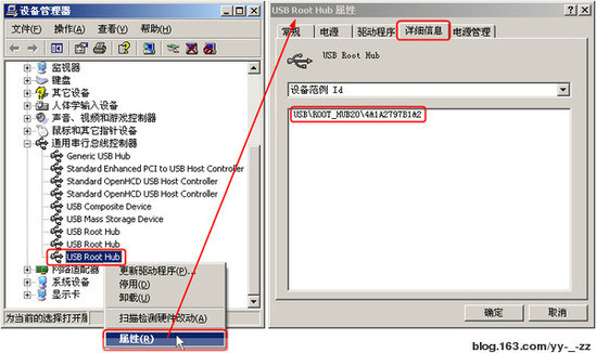解释:上边代码便是先实现停用USB设备然后启用。后边那一长串东西需要您自个更改,办法是在“USB Root Hub”上右键点击选取“属性”,然后选取“详细信息”,使用“设备范例ID”覆盖掉上边代码里的便OK了。最后得留意的是,“@”与双引号,此为成败的关键!