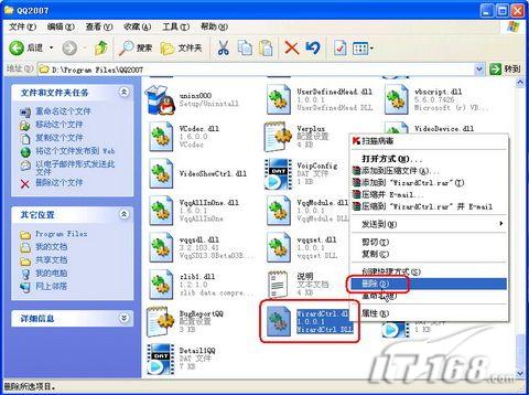 新安装完QQ之后,用您自个全部QQ号分别登陆之后再关闭QQ,随后去QQ安装后的文件夹里找出WizardCtrl.dll文件且右击它,左键选取“删除”,也即是将WizardCtrl.dll文件删除,如此这台计算机的QQ便仅可登陆您删除WizardCtrl.dll文件前登陆过的QQ号,别的QQ号一律被拒之门外。如图7所示。