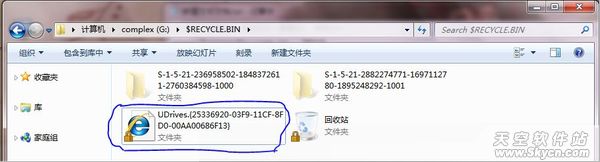由于在windows vista 和windows 7 下。回收站的地址已经不再为X:\Recycled,而是X:$RECYCLE.BIN如图所示。