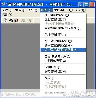 于清扬内网管理界面上,然后点击[配置]/[统一远程桌面策略配置],如图所示