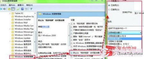 第四、 双击之后打开对话框,点击“已启用”,从下边的的选项里选择劝仅限制驱动器C”,然后单击“应用按钮”。