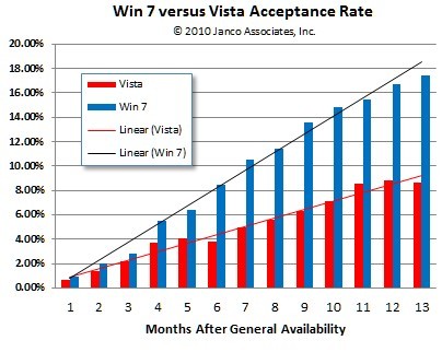 就在同月,微软官方也猜想Windows7份额首次超越了Vista。