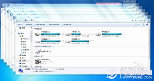 层叠窗口之显示方式,即是将窗口根据一个叠一个的方式,一层一层的叠起来。如下图。