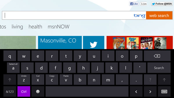 微软在虚拟键盘上增加了一些很酷的功能。键盘弹出时,点击“控制”按钮就可以看到各种传统快捷键,如全选、复制和粘贴。