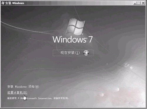 现在,C盘当中已经有了一个Win7系统,如果此时启动将会提示出错,没关系,用Win7安装光盘启动计算机,到了“现在安装”步骤时,选择界面下方的“修复计算机”(如图4所示),再选择“修复并重新启动”,很快就可以修复完成并自动重启了。此时取出光盘,系统即可从硬盘启动。